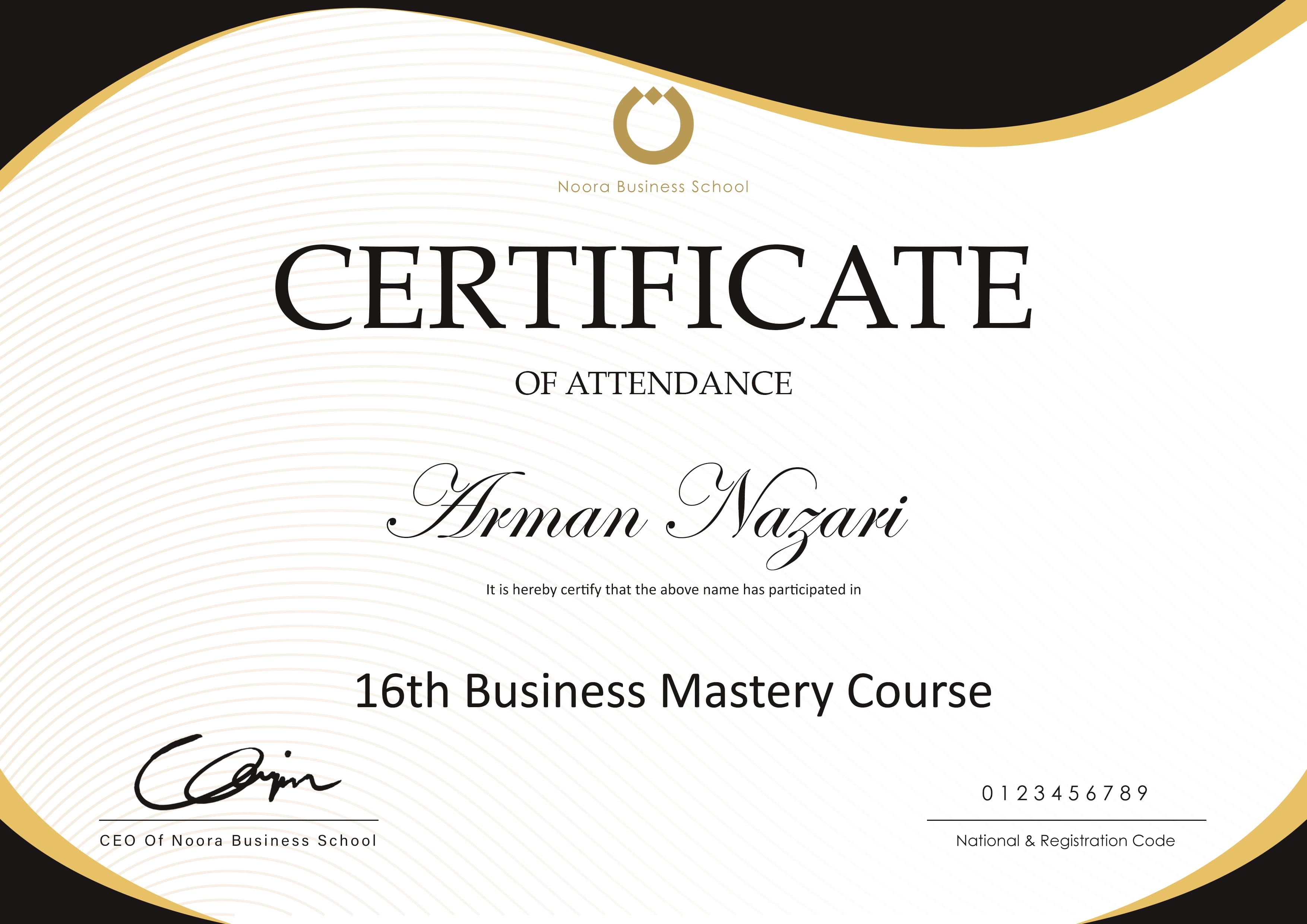 - گواهینامه Business Mastery Course از مدرسه کسب و کار نورا